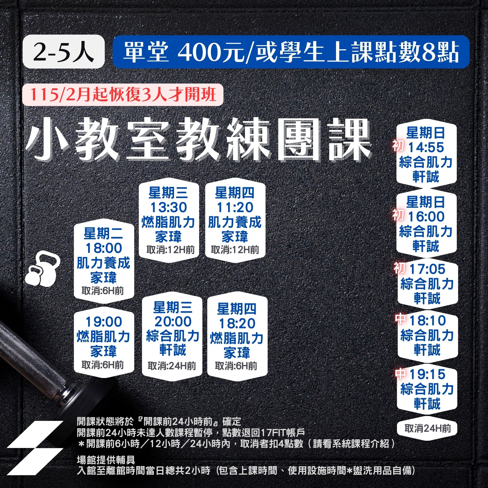 ✦肌力課包班:3-4人包班/八堂/每位4000元、5-6人包班/八堂/每位3200元