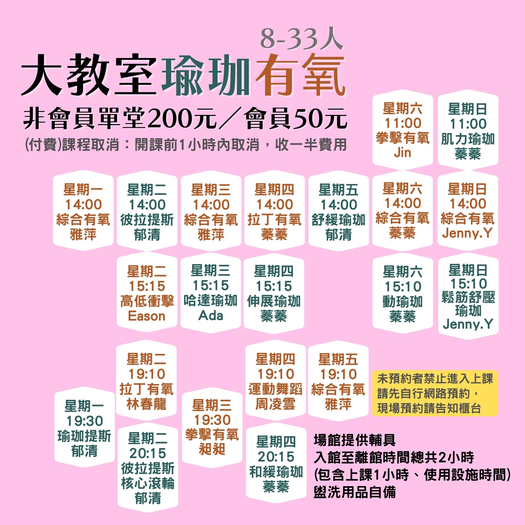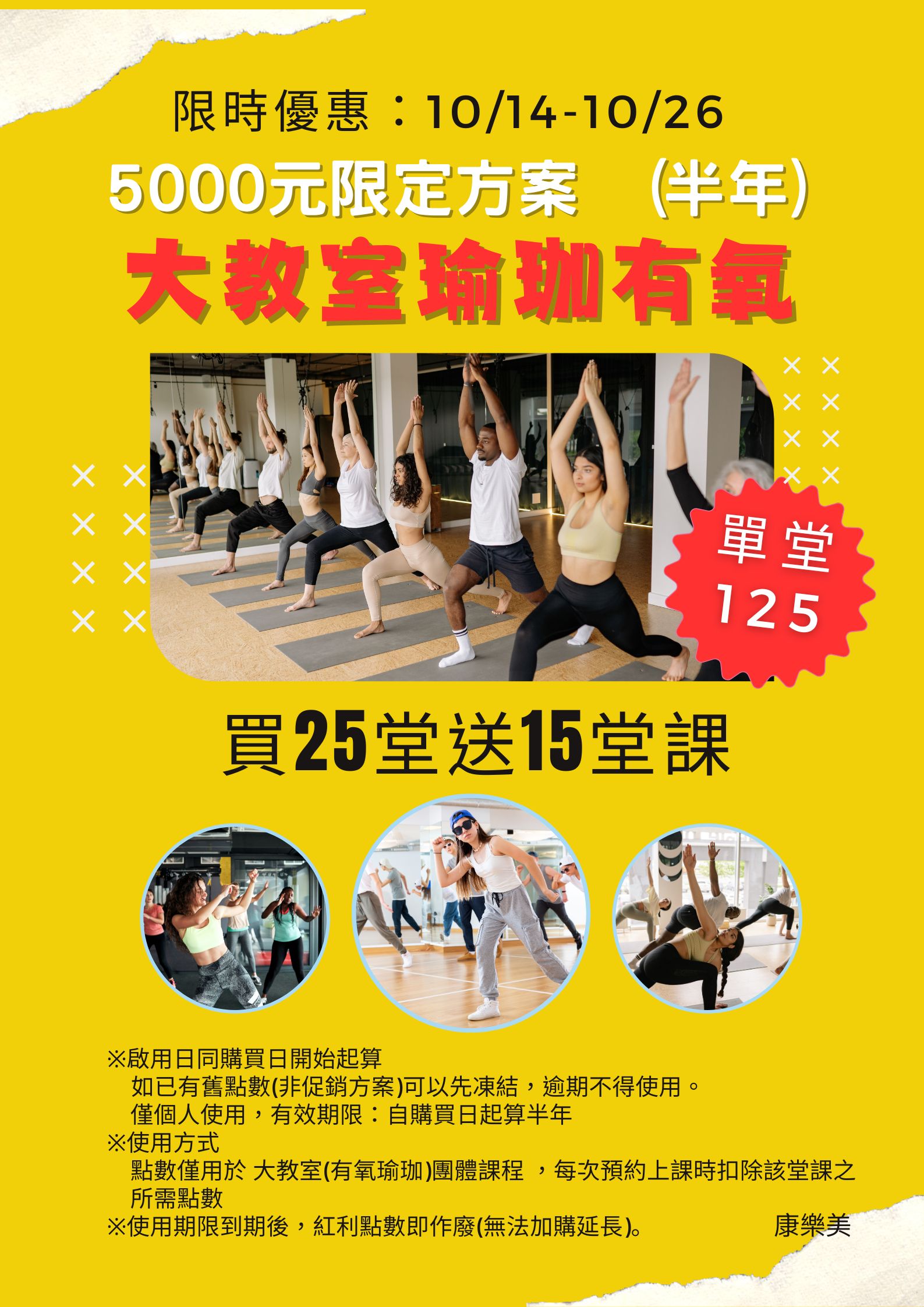 大教室課程:購買5000方案,每堂125元 (原價200)